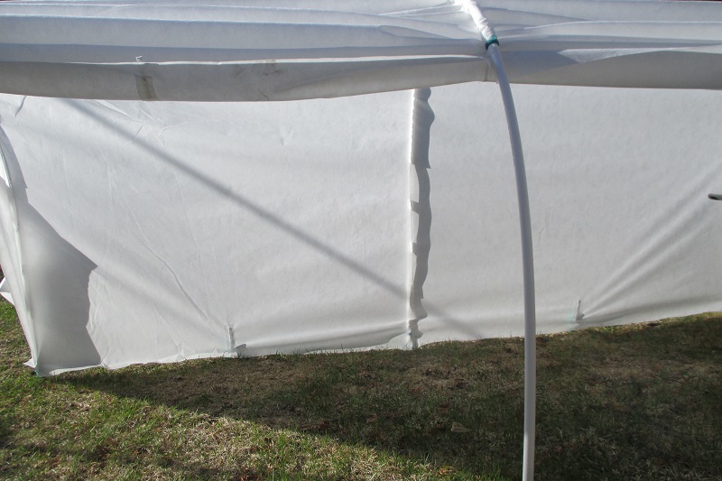 Усиленные рукава для дуг. Рукава парника - это прошитые каналы, в которые вставлены дуги каркаса, именно они удерживают весь парник при порывах ветра и принимают нагрузку на себя. Благодаря им парник чрезвычайно ветроустойчив, даже ураганный ветер не может его . В других парниках они быстро изнашиваются, так как сшиты в виде обычных складок в материале. А здесь рукава сделаны из другого, более прочного укрывного материала "Reifenhauser SSS-100", чем чехол и пришиты к нему отдельно. Это увеличило срок службы парника в несколько раз.